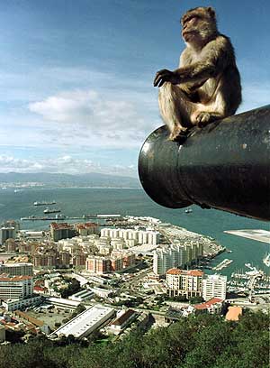 Macaque overlooking Gibraltar- the capital and largest city